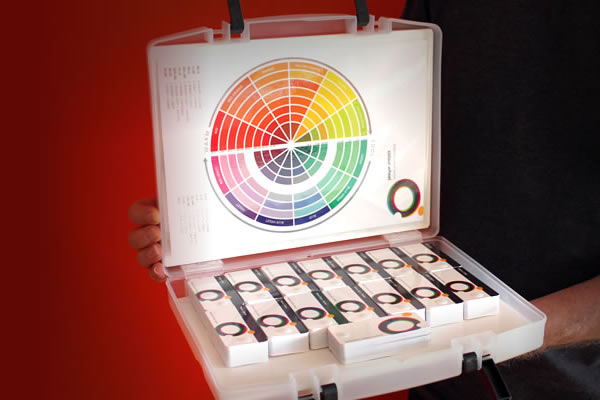 The logo is based around the concept of primary colours intersecting and forming the colour spectrum. The circular format of the device is the perfect expression of infinity, continuity and connection, and here encompasses infinity of colour into a precisely defined system to be used as an invaluable fool-proof reference tool.